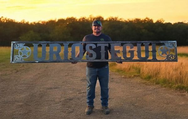 We make our Overhead Signs out of tough 1/8" mild steel. If you want thicker steel, just ask—we got you! For example, a 14-inch tall by 95-inch long sign starts at $300 for raw metal. We also offer powder coating if you want it to look even cooler, but that costs extra. Custom overhead signs mean you get to create the perfect sign for you. You can choose your font, size, and even add your logo or brand!